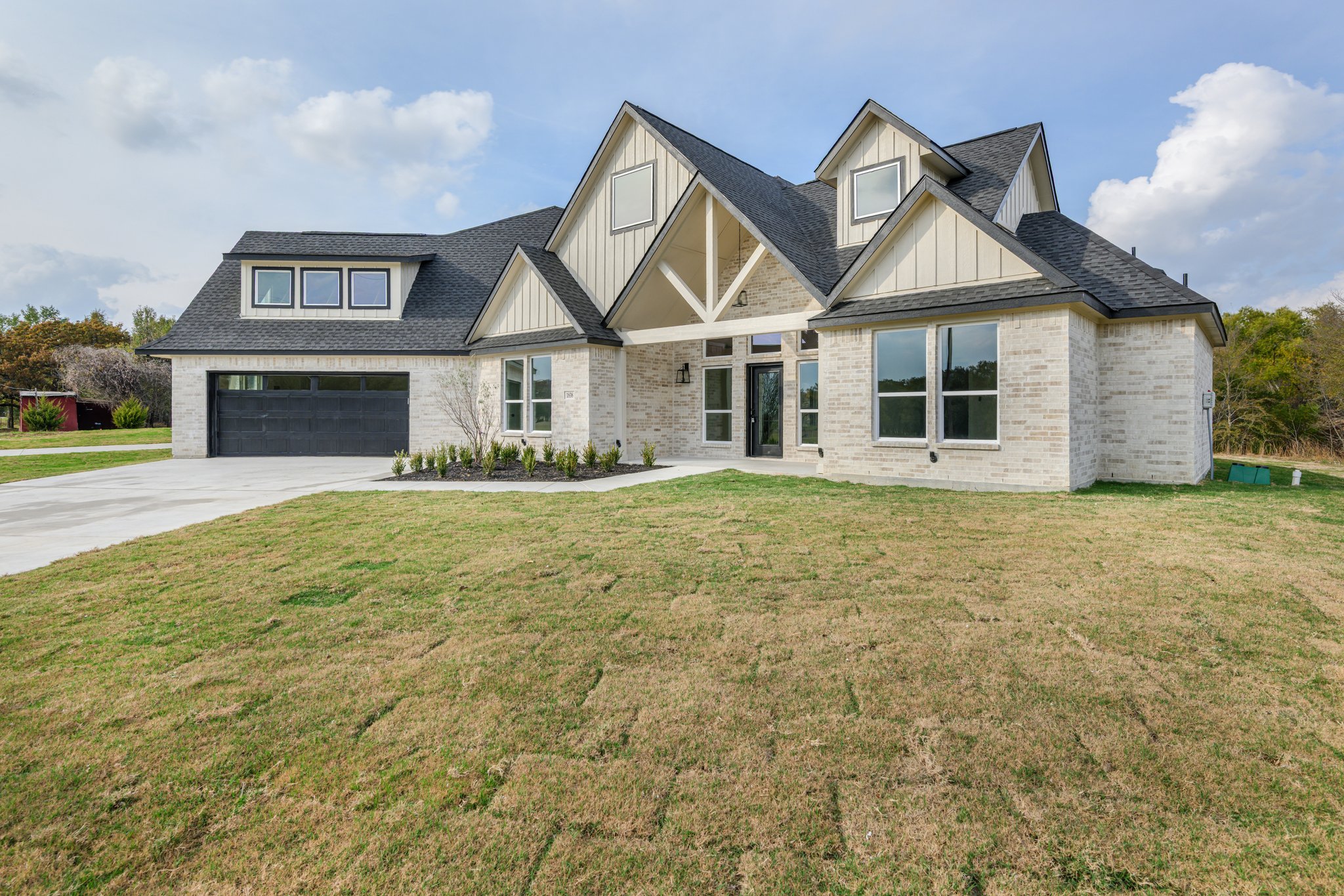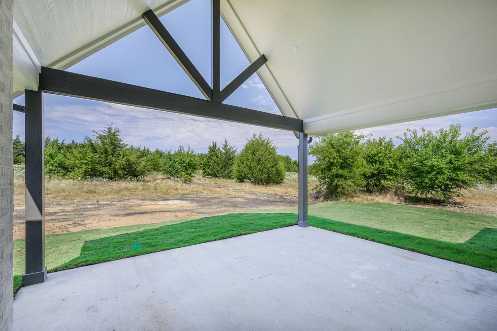 House Plan: ELM 4/3/2 2326 sq ft. The Elm is a single-story home which has a smart, open layout with 4 bedrooms and 3 full bathrooms—ideal for families seeking comfort, efficiency, and modern style. The living area has a high vaulted in the ceiling kitchen, and dining space. Luxury vinyl plank flooring runs throughout the main living area. Expansive windows fill the area with natural lights with views of the large cedar beamed covered patio. The kitchen area is set off with a large quartz topped island, custom cabinets and a large wooden range hood. The walk-in pantry is spacious and near the laundry room which includes a full normal sink. All these spaces may be customized to the owner’s preference with our different building packages. The private primary suite is extensive and includes a dedicated ensuite bathroom, offering a peaceful retreat from the secondary bedrooms. Three additional bedrooms and two full bathrooms provide flexibility for guests, home offices, or growing households.