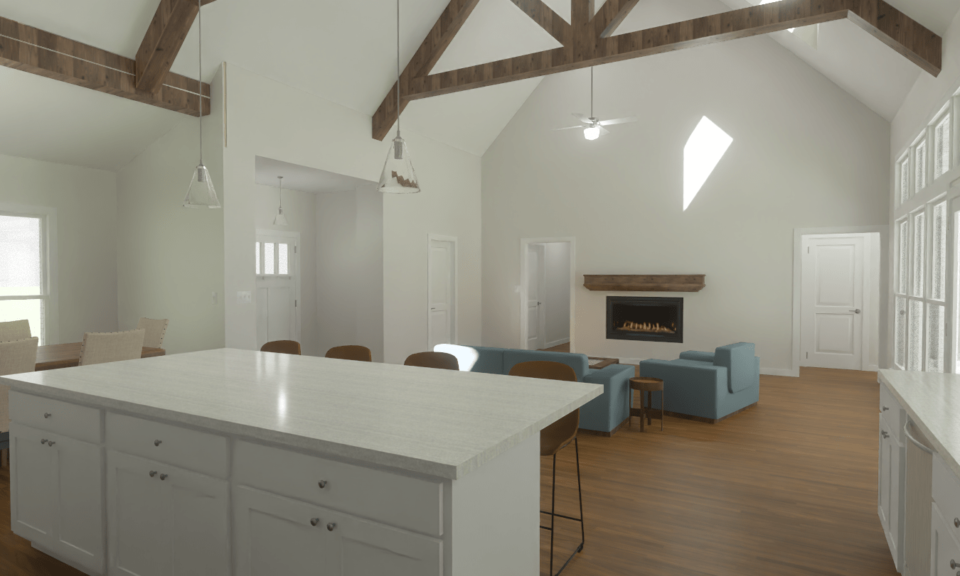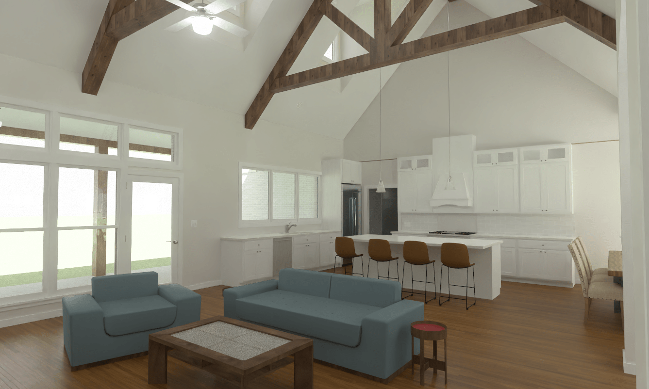 House Plan: Ironwood Approx. 2,779 Sq. Ft. 4 Bedrooms | 3 Bathrooms | 2-Car Garage Optional 5 Bedrooms | 3.5 Bathrooms | 3-Car Garage Available The Ironwood is a modern farmhouse created for buyers wanting architectural impact and functionality. Its striking front elevation blends rock accents, creating a refined yet welcoming presence, while the rear covered porch extends the living space outdoors for effortless entertaining. Designed with flexibility in mind, the Ironwood offers either a four-bedroom layout or the option to expand into a larger five-bedroom configuration with an additional half bath and three-car garage. Dramatic beamed ceilings elevate the main living areas. The kitchen is anchored by a large scullery-style pantry with dedicated refrigerator space, providing exceptional storage. Gathering spaces flow naturally throughout the home, offering both openness and privacy where needed. Available in multiple configurations, the Ironwood adapts easily to growing families, multi-generational living, or those needing additional rooms, making it the most versatile and feature-rich home in the collection.