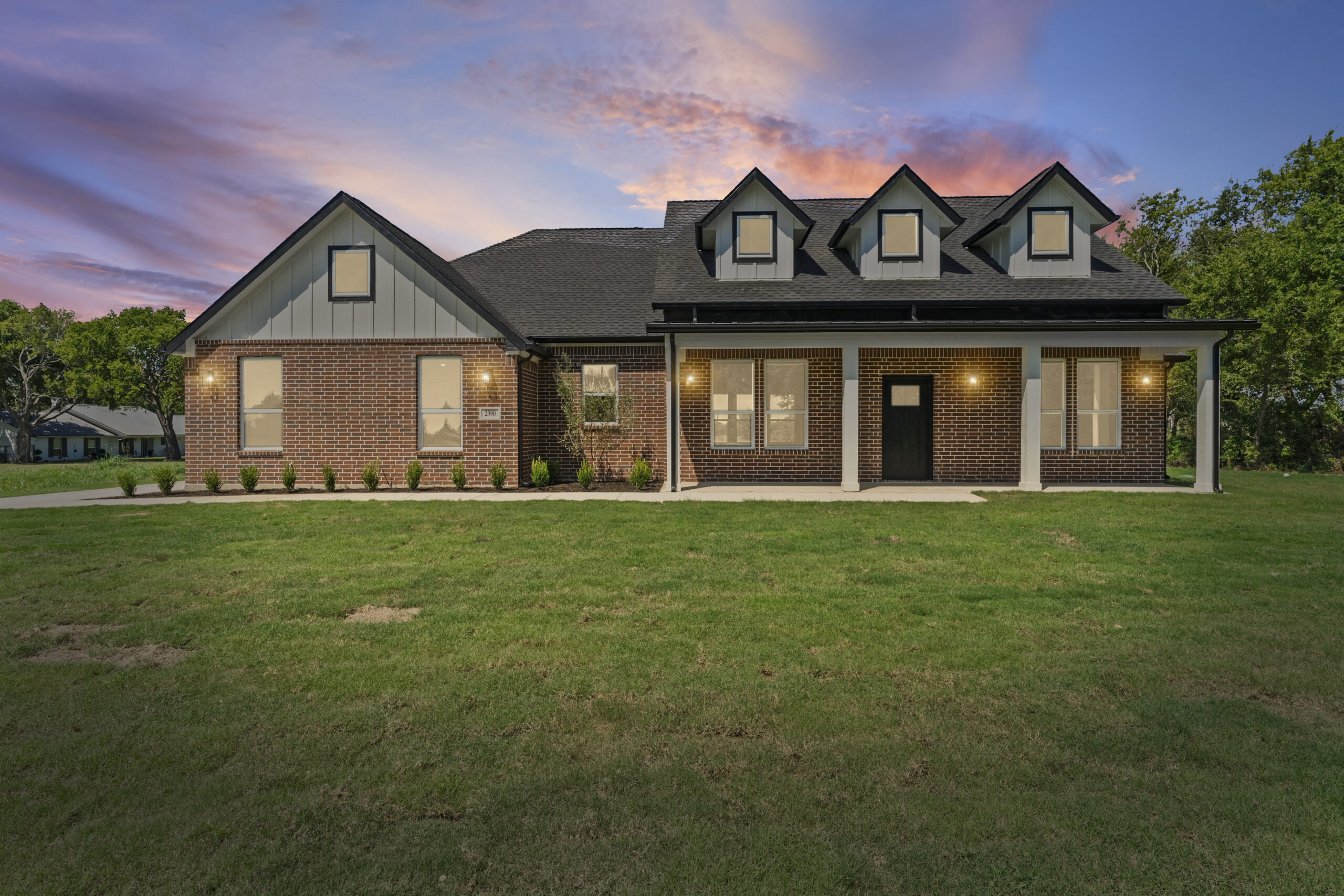 Features- Beautiful red brick exterior, Light stone fireplace, open concept, vaulted ceilings, Stunning coffered dining room ceiling, picture windows in master bedroom, porch access from master bedroom, spa-like bathroom with sleek modern features, glass shower with regular and rain shower head with a wand, larger master closet, great flow from master to bathroom to closet and then laundry room, caked ceilings in other rooms, large back porch with impeccable views, Caddo Basin SUD - Water / Oncor Electric - Power to choose provider / 360 Broadband - Internet / Deed Restrictions on the properties